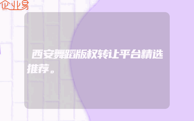 - 西安舞蹈版权转让平台精选推荐一、舞蹈版权的价值与重要性随着舞蹈艺术的繁荣,舞蹈版权问题日益受到关注。在西安,舞蹈版权转让平台应运而生,为广大舞蹈爱好者和从业者提供了一个重要的舞台。舞蹈版权不仅关乎创作者的劳动成果,更是保护其创作热情和积极性