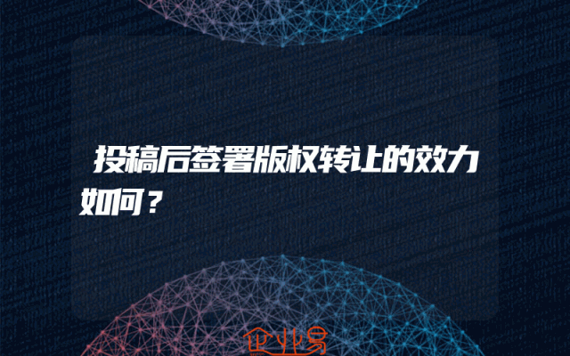- 标题:投稿后签署版权转让的效力如何?一、版权转让的基本概念和重要性在知识产权领域,版权转让是著作权人将其作品的所有权及相关权利转让给他人的行为。对于作者和作品而言,版权转让具有极其重要的意义,因为它涉及到作品的控制权、传播权以及经济利益。在
