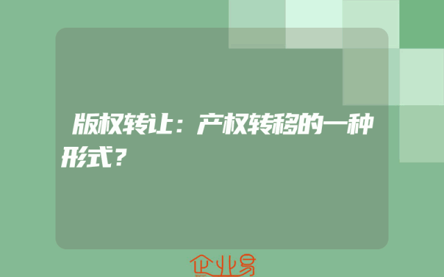 - 版权转让:产权转移的一种形式?