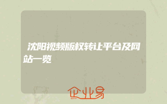 - 沈阳视频版权转让平台及网站一览