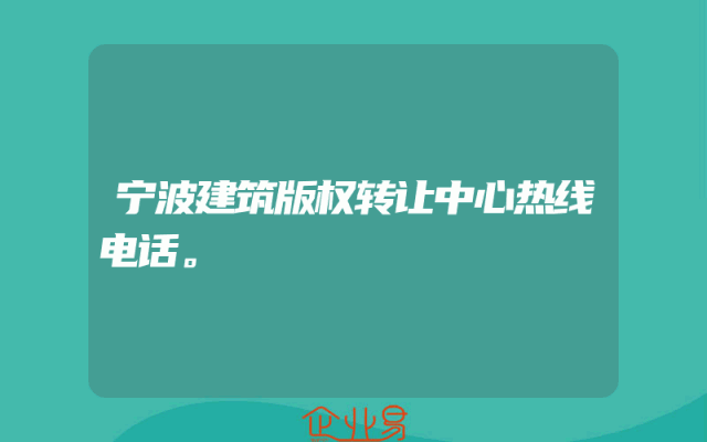 - 宁波建筑版权转让中心热线电话。