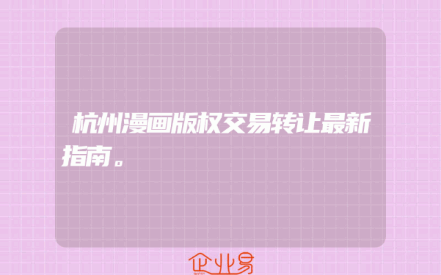 - 杭州漫画版权交易转让最新指南。
