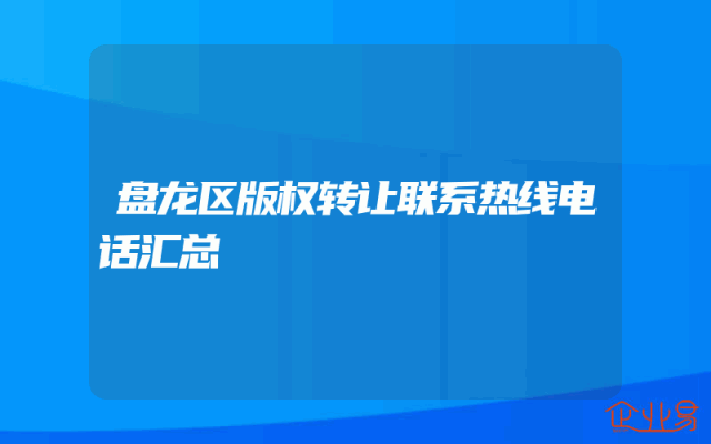 - 盘龙区版权转让联系热线电话汇总