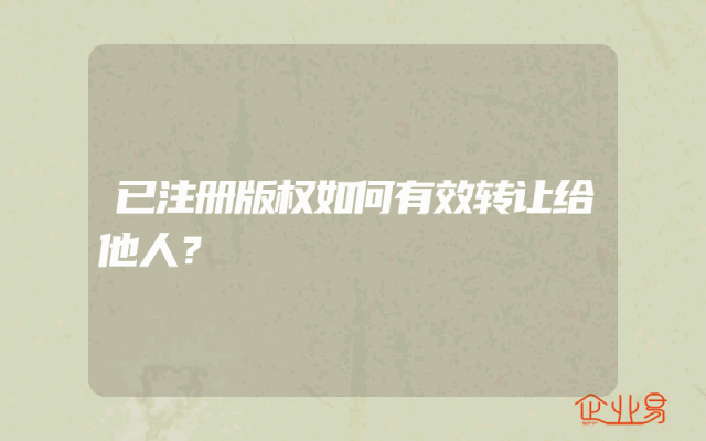- 已注册版权如何有效转让给他人?
