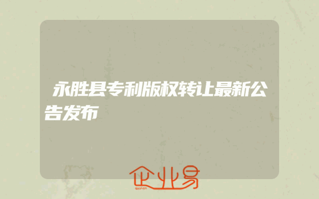 - 永胜县专利版权转让最新公告发布一、专利版权转让动态更新近日,永胜县政府正式发布了专利版权转让的最新公告,标志着该县在知识产权保护方面迈出了新的步伐。此项公告的发布,不仅是对知识产权重视的体现,更是对创新精神的鼓励和激励。二、转让公告详细内容