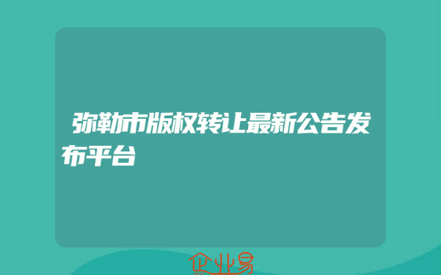 - 弥勒市版权转让最新公告发布平台一、版权转让动态更新弥勒市政府高度重视版权转让事宜,为了更好地保障各方权益,最新公告发布平台已正式上线。该平台致力于提供最新、最全面的版权转让信息,确保创作者与受让方之间的交易透明、公正。二、多元内容的版权交易
