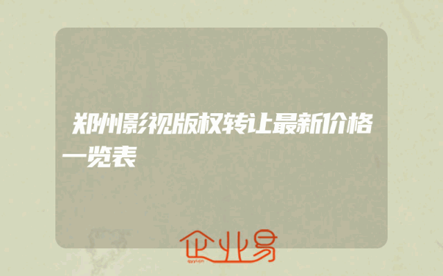 - 郑州影视版权转让最新价格一览表一、影视版权概述郑州作为中部地区的重要城市,影视产业的发展势头正盛。影视版权转让作为文化产业的核心部分,逐渐成为企业和个人间知识产权交易的热门话题。最新价格一览表旨在提供一个清晰的视角,帮助大众了解当前影视版权