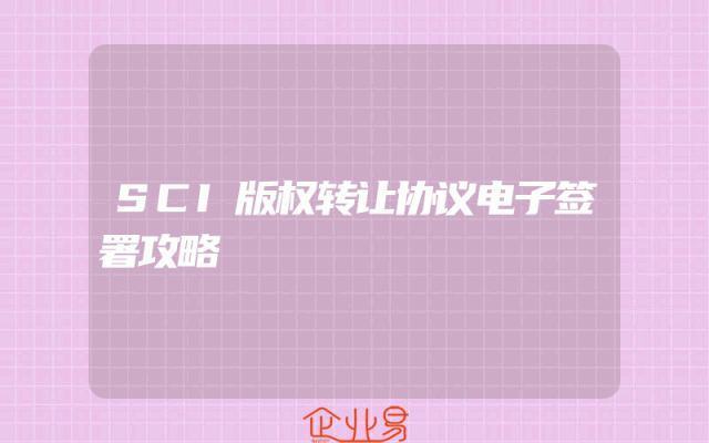 - SCI版权转让协议电子签署攻略一、了解SCI版权转让协议的重要性在学术出版领域,SCI版权转让协议是保护作者权益、明确出版商与作者之间权利义务关系的关键文件。随着数字化时代的发展,电子签署版权转让协议已成为趋势。了解并熟悉电子签署流程,对于
