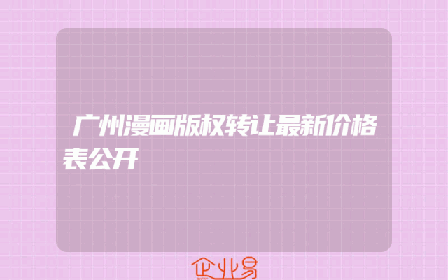 - 广州漫画版权转让最新价格表公开