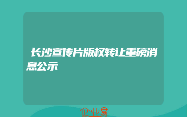 - 长沙宣传片版权转让重磅消息公示