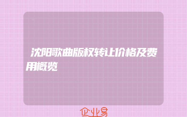 - 沈阳歌曲版权转让价格及费用概览版权转让一直是音乐行业的重要部分,尤其是沈阳这一充满活力的音乐创作之地。本文将从多角度出发,探讨沈阳歌曲版权转让的价格及费用概览。版权转让涉及多个因素,包括歌曲知名度、创作