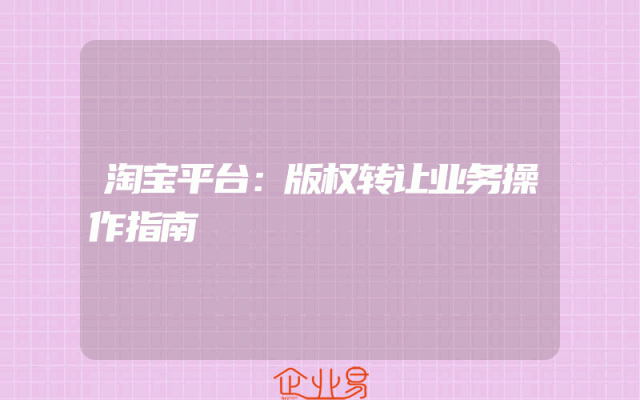 - 淘宝平台:版权转让业务操作指南