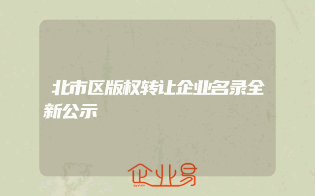 - 北市区版权转让企业名录全新公示