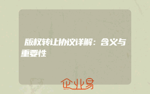 - 版权转让协议详解:含义与重要性