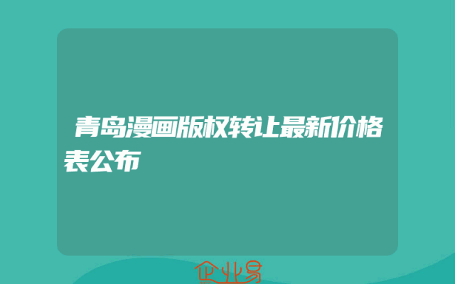 - 青岛漫画版权转让最新价格表公布
