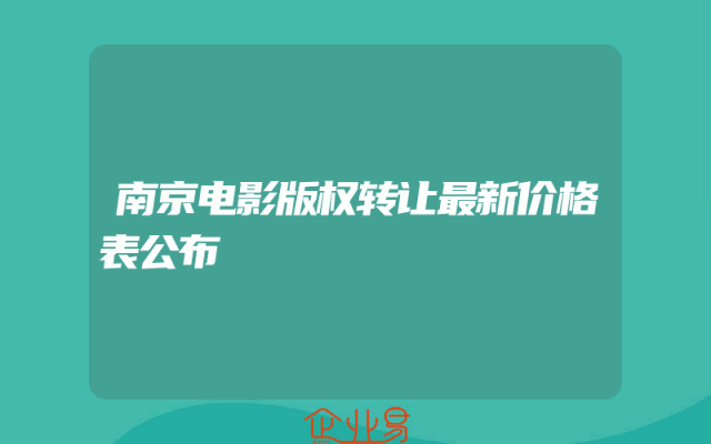 - 南京电影版权转让最新价格表公布