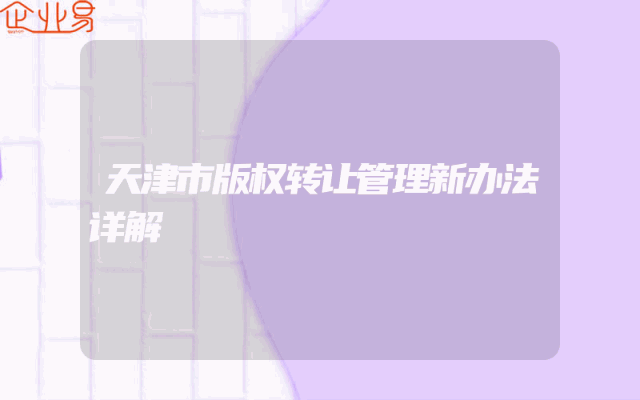 - 天津市版权转让管理新办法详解一、新办法的概述随着科技的不断进步和文化产业的飞速发展,天津市版权转让活动日益频繁,为了更好地规范版权转让行为,保护版权人的合法权益,天津市近期出台了新的版权转让管理办法。该办法旨在明确版权转让的程序、规范交易行