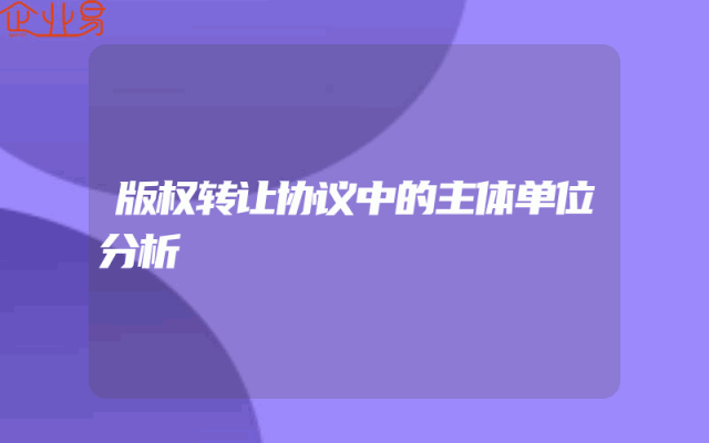 - 版权转让协议中的主体单位分析一、引言在知识产权领域,版权转让协议是保护创作者权益、规范作品传播与利用的重要法律文书。其中,主体单位作为协议的核心参与者,其角色与权责尤为关键。二、主体单位的角色定位版权转让协议中的主体单位主要涉及原创作者和受