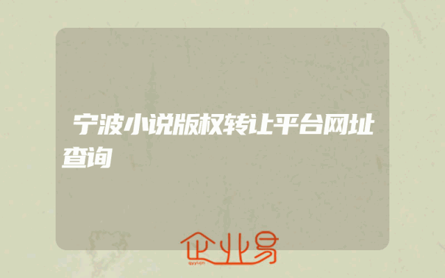 - 宁波小说版权转让平台网址查询