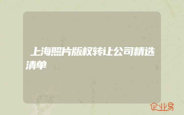 - 上海照片版权转让公司精选清单一、引言随着摄影艺术的普及和数字化时代的到来,照片版权转让市场逐渐繁荣。上海作为国际化大都市,拥有众多专业的照片版权转让公司。本文将为您呈现一份精选清单,从多个角度阐述观点,帮助您更好地了解这些公司。二、公司规模