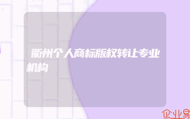 - 衢州个人商标版权转让专业机构一、引言在知识经济时代,商标和版权等知识产权的重要性日益凸显。衢州作为经济活跃的地区,个人商标版权转让活动也逐渐增多。为适应这一市场需求,衢州个人商标版权转让专业机构应运而生,为个人和企业提供高效、专业的知识产权