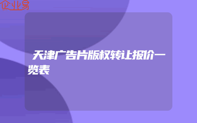 - 天津广告片版权转让报价一览表一、引言随着广告行业的繁荣发展,广告片的版权转让成为行业内重要的经济活动之一。天津作为北方经济重镇,其广告片版权转让市场也日渐活跃。本文将详细介绍天津广告片版权转让的报价情况,以便为相关人士提供有价值的参考信息。