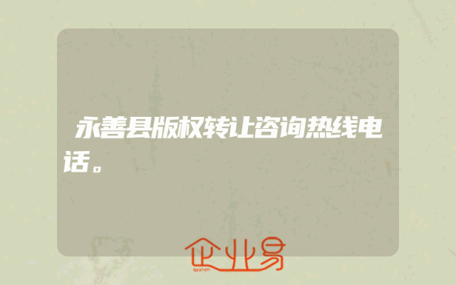 - 永善县版权转让咨询热线电话:解析版权转让的多个角度一、版权转让的重要性随着知识产权价值的不断提升,版权转让作为一种重要的知识产权运营方式,越来越受到社会各界的关注。在永善县,版权转让咨询热线电话的设立,为版权所有者提供了一个便捷的咨询平台,
