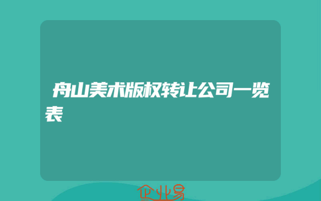 - 舟山美术版权转让公司一览表一、公司概述随着创意产业的蓬勃发展,舟山地区美术版权转让公司逐渐崭露头角。这些公司在知识产权保护、美术作品的创作与推广、版权交易等方面发挥着重要作用。舟山的美术版权转让公司致力于提供一个公平、透明、规范的交