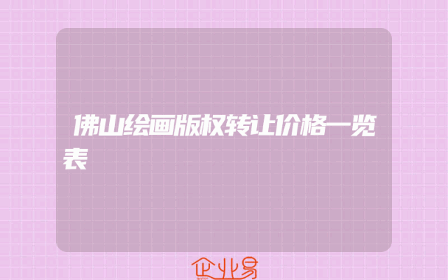 - 佛山绘画版权转让价格一览表一、版权转让在佛山的重要性随着文化创意产业的不断发展,佛山作为一个文化艺术氛围浓厚的城市,绘画版权转让的需求日益凸显。版权转让是知识产权交易的重要组成部分,对于创作者而言,能够有效保护自己的创作成果,同时促进文化艺
