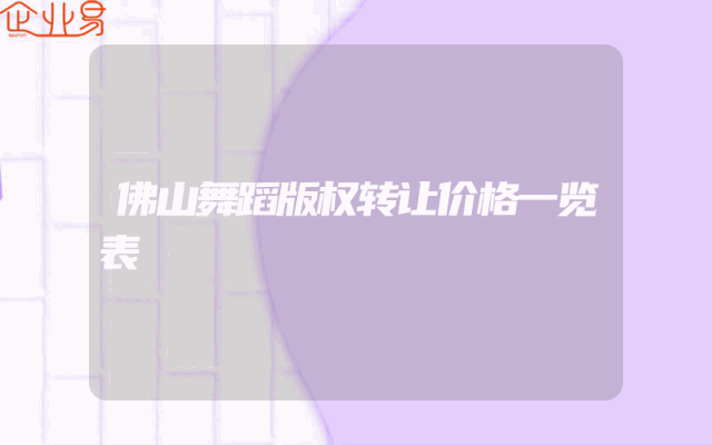 - 佛山舞蹈版权转让价格一览表一、舞蹈版权概述在佛山地区,舞蹈作为一种艺术形式,其版权也受到法律的保护。舞蹈版权涵盖了舞蹈动作、编排、音乐、服装设计等多个方面。当创作者希望将自己的舞蹈作品转让给他人时,需要明确版权转让的价格。价格受到多种因素的