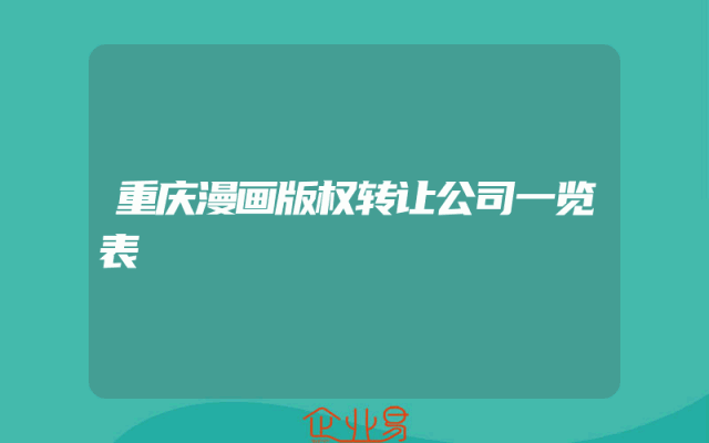 - 重庆漫画版权转让公司一览表一、引言随着文化创意产业的蓬勃发展,漫画版权转让成为重庆市文化产业的重要组成部分。本文将为您详细介绍重庆地区从事漫画版权转让的公司,以便您更好地了解市场动态和行业状况。二、主要漫画版权转让公司1.重庆某动漫版权贸易