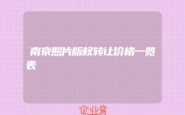 - 南京照片版权转让价格一览表
