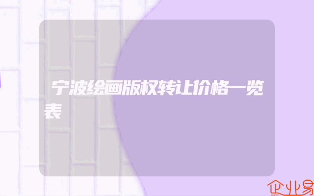- 宁波绘画版权转让价格一览表