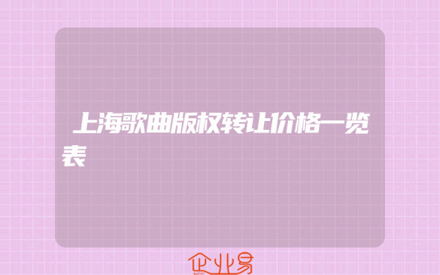 - 上海歌曲版权转让价格一览表版权转让在上海音乐产业的重要性随着音乐产业的不断发展,上海作为中国最大的音乐市场之一,其歌曲版权转让市场也日益繁荣。版权转让是音乐产业中不可或缺的一环,它确保了创作者的权益得到合法保护,同时也促进了音乐的广泛传播和