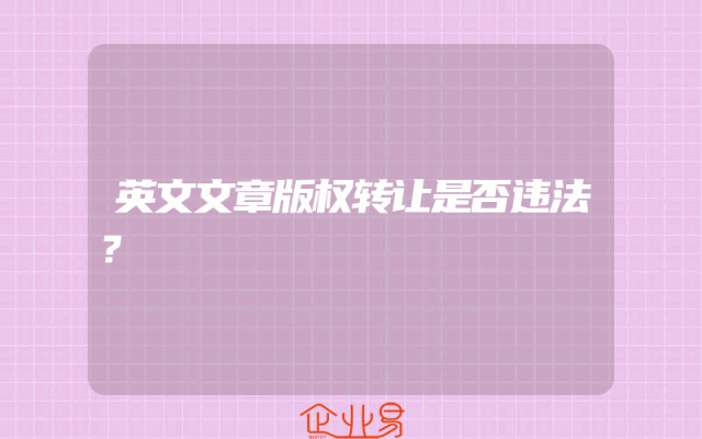 - 英文文章版权转让是否违法?一、版权转让的基本概念版权转让是指版权所有者将其著作的复制、发行、表演、展示等权利,以某种形式授权给另一方使用的行为。版权转让必须遵守相关法律规定,确保合法、公正、公平地进行。二、版权转让的合法性要求在进行版权转让