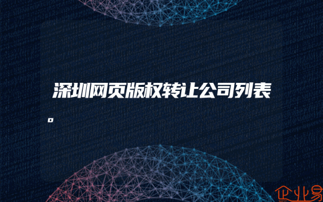 - 深圳网页版权转让公司列表一、深圳网页版权转让公司概述深圳市,作为中国的经济特区,一直以来都是科技创新的领跑者。随着互联网产业的飞速发展,网页版权转让业务在深圳得到了广泛关注。众多专业的网页版权转让公司如雨后春笋般涌现,为创作者和企业提供了全