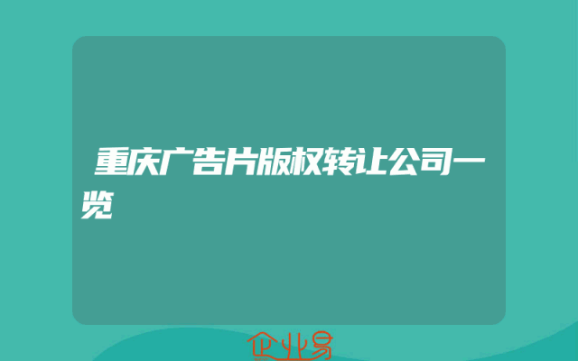 - 重庆广告片版权转让公司一览一、引言随着重庆市文化创意产业的飞速发展,广告片制作及版权转让成为了市场中不可忽视的一环。在这样的背景下,重庆广告片版权转让公司应运而生,为创作者和企业提供了专业的版权交易服务。本文将为您详细介绍重庆地区的广告片版