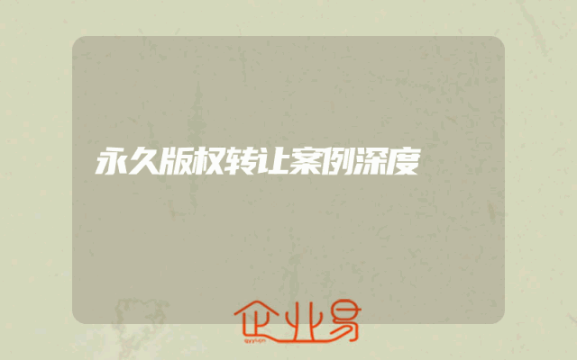 - 永久版权转让案例深度解析一、背景介绍在知识经济时代,知识产权的重要性日益凸显。永久版权转让作为知识产权领域的一种重要交易方式,涉及著作权、专利权等核心权利,其案例解析对于理解版权转让的实质、法律效应及实际操作具有重要意义。二、案例概述选择一