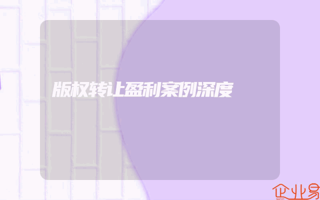 - 版权转让盈利案例深度解析一、版权转让基本概念版权转让是指版权人将其著作权中的一项或多项权利,以一定的条件许可他人使用或转让给他人,并从中获取经济利益的行为。随着知识产权价值的不断提升,版权转让已成为文化产业盈利的重要途径之一。二、案例展示: