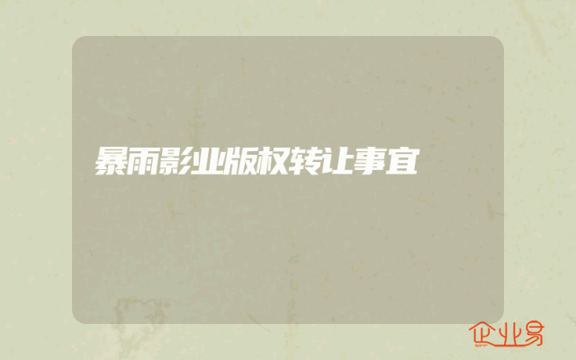 - 暴雨影业版权转让事宜解析版权市场背景下的转让现象近年来,随着国内影视产业的快速发展,影视版权问题日益受到重视。暴雨影业作为一家颇具实力的影视公司,其版权转让事宜尤为引人注目。版权转让是知识产权保护下的重要环节,不仅关乎企业的经济利益,更涉及