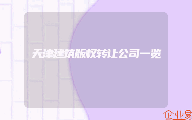 - 天津建筑版权转让公司一览一、天津建筑版权转让市场概况天津,作为中国的北方经济重镇,其建筑版权转让市场日益繁荣。随着知识产权保护意识的加强,越来越多的企业和个人开始重视建筑版权的转让与保护。天津的建筑版权转让公司便是这一市场的主要参与者,他们
