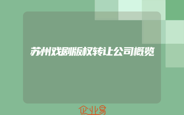 - 苏州戏剧版权转让公司概览一、公司背景与发展苏州戏剧版权转让公司作为苏州市内一家专注于戏剧版权转让与管理的专业机构,依托苏州丰富的文化底蕴和广阔的戏剧市场,逐渐崭露头角。该公司致力于保护戏剧版权,促进戏剧作品的流通与传播,同时推动文化产业的发