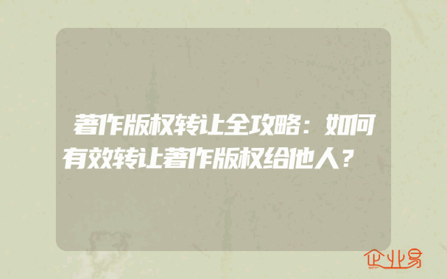 - 著作版权转让全攻略:如何有效转让著作版权给他人?