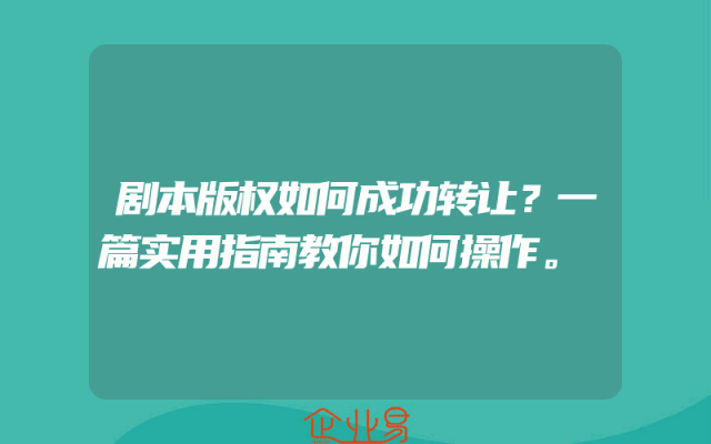 - 剧本版权如何成功转让?一篇实用指南教你如何操作。