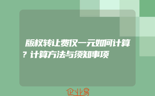 - 版权转让费仅一元如何计算?计算方法与须知事项