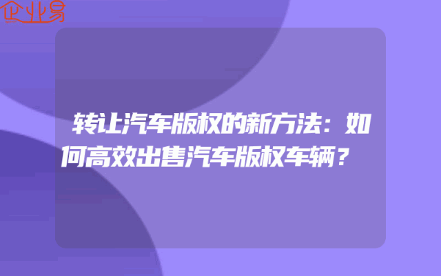 - 转让汽车版权的新方法:如何高效出售汽车版权车辆?