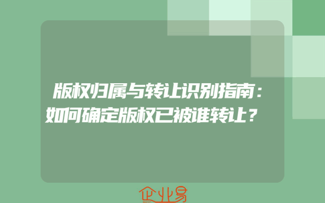 - 版权归属与转让识别指南:如何确定版权已被谁转让?