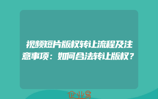 - 视频短片版权转让流程及注意事项:如何合法转让版权?