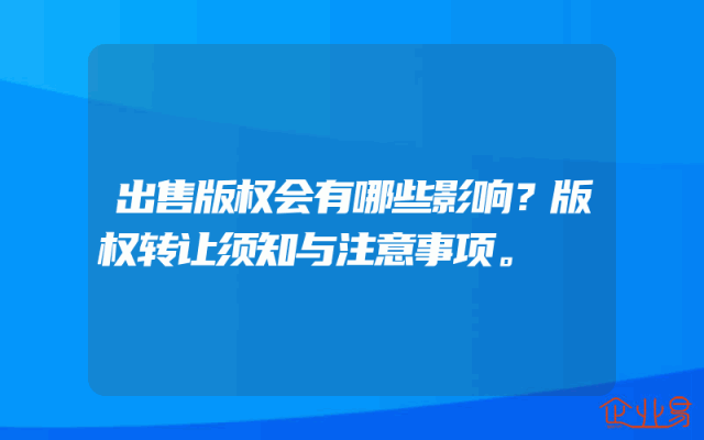 - 出售版权会有哪些影响?版权转让须知与注意事项。