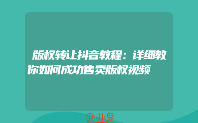 - 版权转让抖音教程:详细教你如何成功售卖版权视频